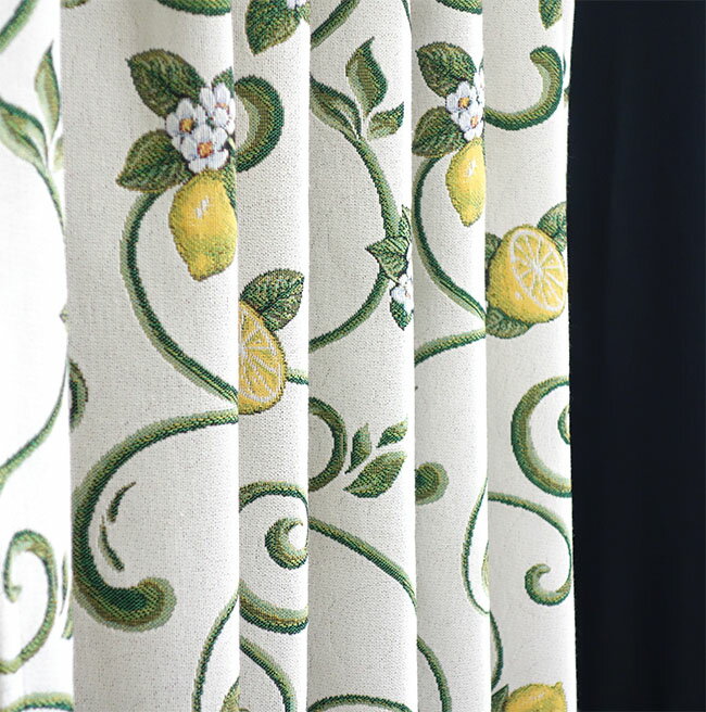 【2倍ヒダ】 オーダーカーテン 高級 ゴブラン織スペイン製 レモン柄「キャスタ」ヨーロッパ 遮光3級 イエロー/グリーン/ホワイト 黄 緑 白ドレープカーテン 新築 マンション かけ替え 掛替 |
