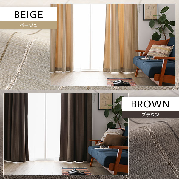 洗える カーテン 4枚セット【幅100×丈200cm・ブラウン】2級遮光 遮光カーテン ドレープ レースカーテン ミラーレース 断熱 保温 省エネ 縦ストライプ 無地調 8色展開 多色 プライバシー対策 厚地 レース 4枚組 かわいい おしゃれ |