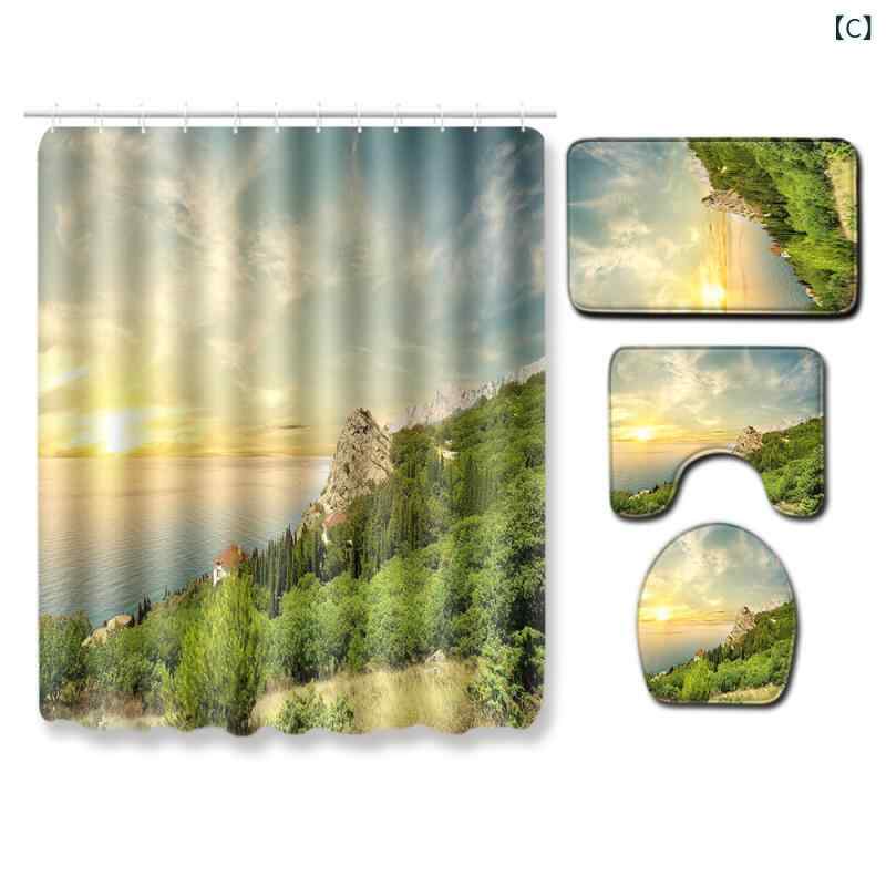 シャワーカーテン バスルーム 風景柄 トイレマット バスマット ポリエステル ウォッシャブル 吸水速乾 滑り止め加工 4点セット 家庭用 浴室 トイレ モダンデザイン |