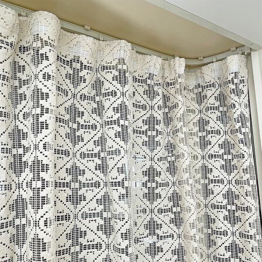カエイレース(Kaei-lace)加栄レース日本製綿混レース出窓小窓スタイルカーテンベージュ天然繊維幅の調整が出来る巾300cmx丈72cm |