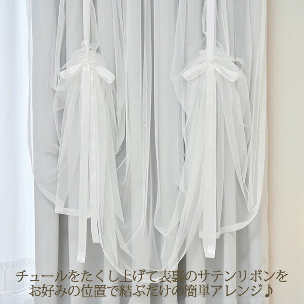 【P5倍!4日20時-11日1:59】リボンアレンジレイヤード遮光カーテン/グレー(幅100×丈135・2枚組)|姫系 かわいい クラシック ガーリー アンティーク風 ロリータ |