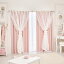 【P5倍!20日限定】マーメイドリボンフリル遮光カーテン(100×200)/ピンク| 姫系 かわいい クラシック ガーリー アンティーク風 ロリータ 2級遮光 レース 2重 2枚セット 洗える フック付 タッセル付 ドレープ |