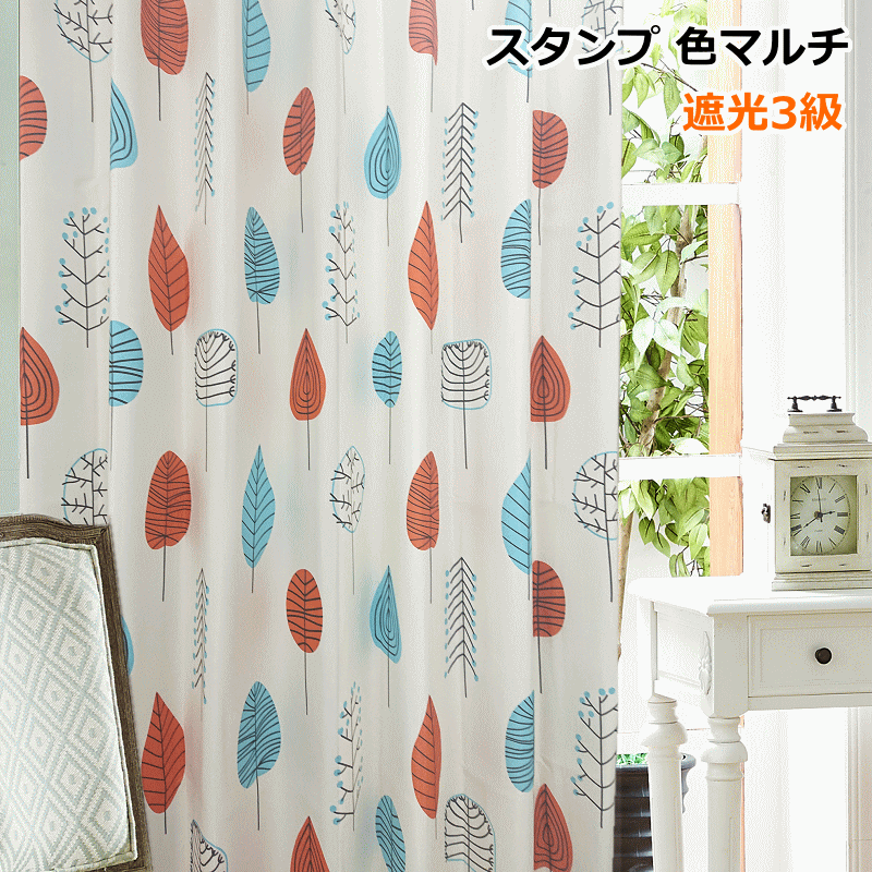 カーテン 遮光カーテン 北欧 スタンプ コダチ柄 丈80cm〜丈225cm 【幅100cm 2枚/幅125cm 1枚/幅150cm 1枚/幅200cm 1枚】 フェミニン柄/モダン柄/花柄/リーフ柄/かわいい柄 オーダーカーテン ドレープカーテン 子供部屋 リビング 寝室【カーテン】curtain |