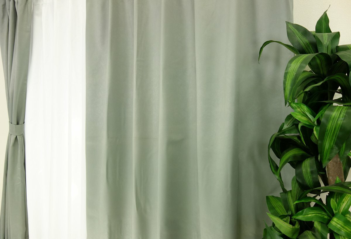 カーテン 4枚セット 遮光 1級 ミラー UVカット 断熱 遮像 機能付き洗濯できる 幅100〜150×丈90〜230cm 出窓にも 1級遮光ドレープ リーフグリーン&選べるミラーレース 4枚組 (※幅150cm2枚はカーテン1枚、レース1枚) |