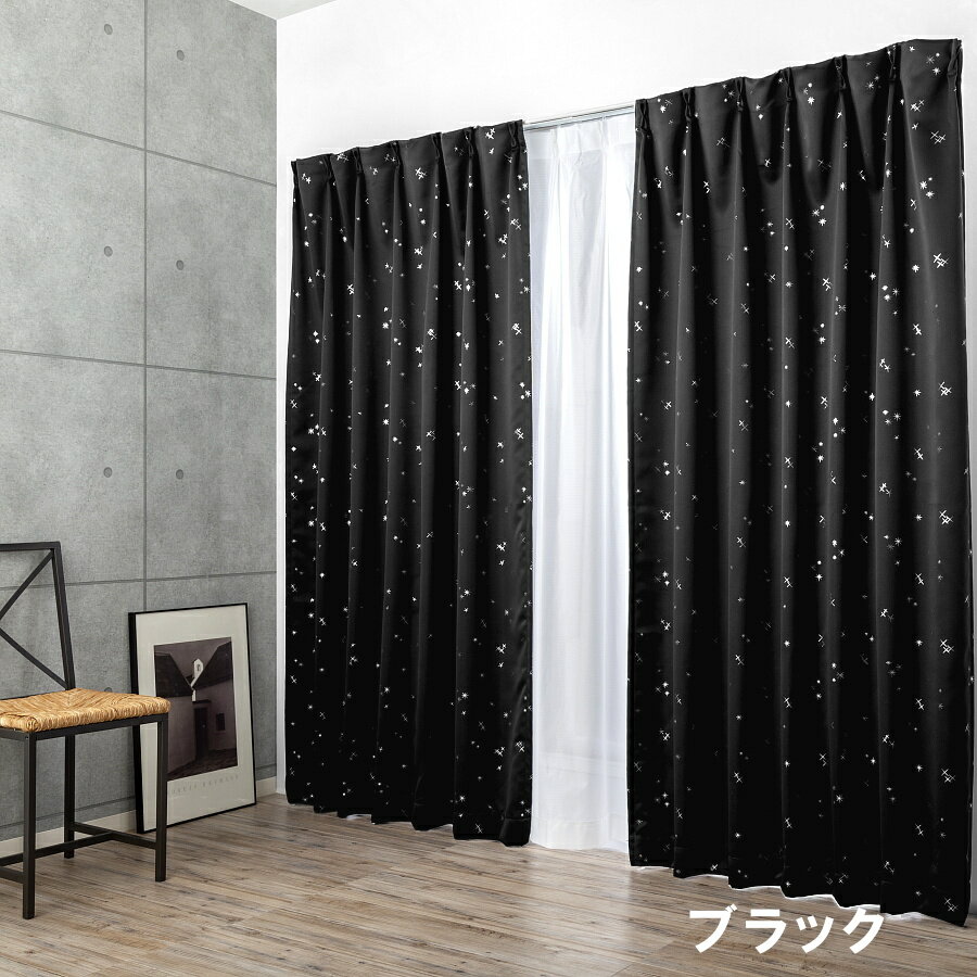 星柄 箔プリント スターライト 1級 遮光 カーテン 100×178cm 100×200cm 2枚入り シンプル スター 星空 |