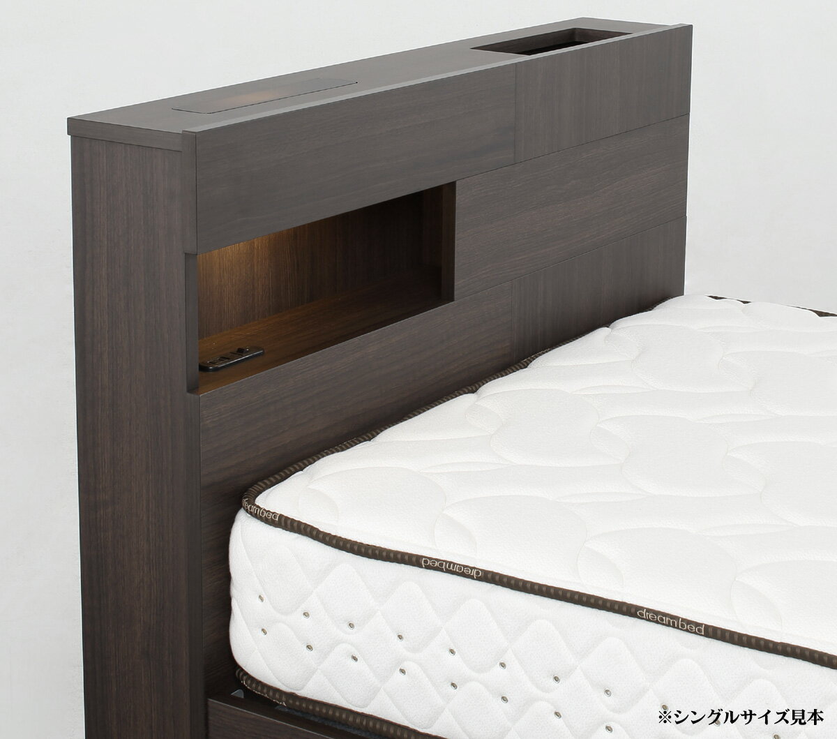 ドリームベッド ウレルディ2754 セミダブルロング 棚付き 宮付き 照明 コンセント キャビネット レッグタイプ 脚付き ステーション 正規販売店 国産/日本製家具(広島製) ウォールナット風ダークブラウン ベッドセット マットレス付き |
