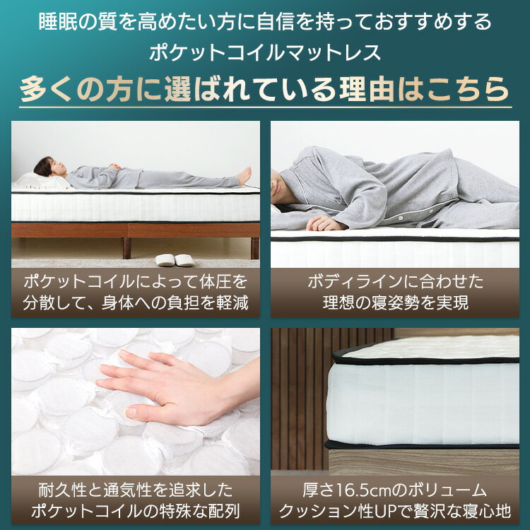 マットレス シングル セミダブル ダブル 点で支える ポケットコイルマットレス 厚さ16.5cmポケットコイル 体圧分散 ベッドマットレス コイルマットレス 耐久 エッジサポート 通気性 圧縮梱包 ホワイト×ブラック ブラック |