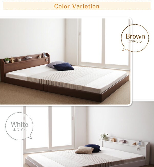 ローベッド ベッド ダブル ロング丈 ボンネルコイルマットレス付き 棚付き 宮付き 照明付き 日本製 国産 長い ロング ロータイプ フロアベッド 低いベッド コンセント付き 木製ベッド 新婚 カップル 同棲 家族 親子ベッド ファミリー 親子ベッド ブラック/ホワイト/ブラウン |