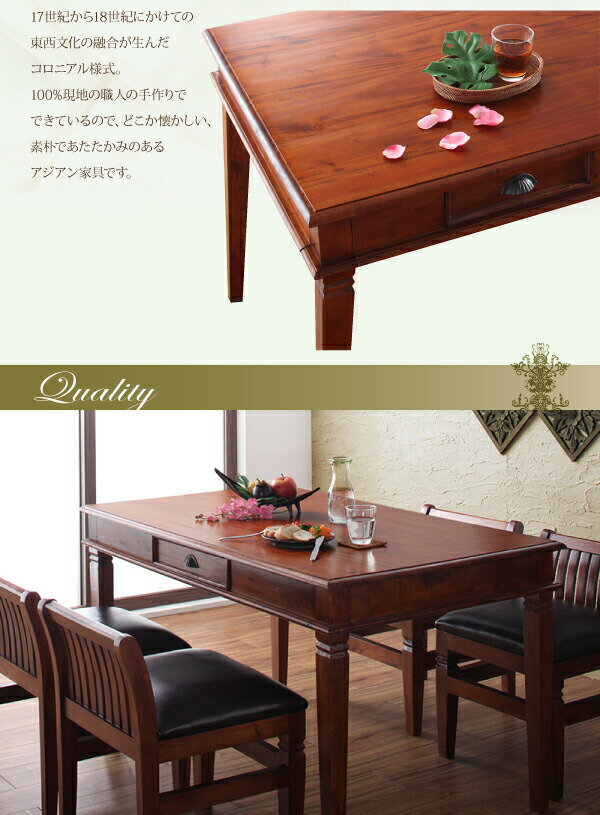 ダイニング5点セット アジアン家具 コロニアル様式 おしゃれ エレガント 天然木製 マホガニー材 幅130cmダイニングテーブル ダイニングチェア4脚 4人用ダイニングセット 高級感 コロニアル調 クラシックインテリア アジアンインテリア |