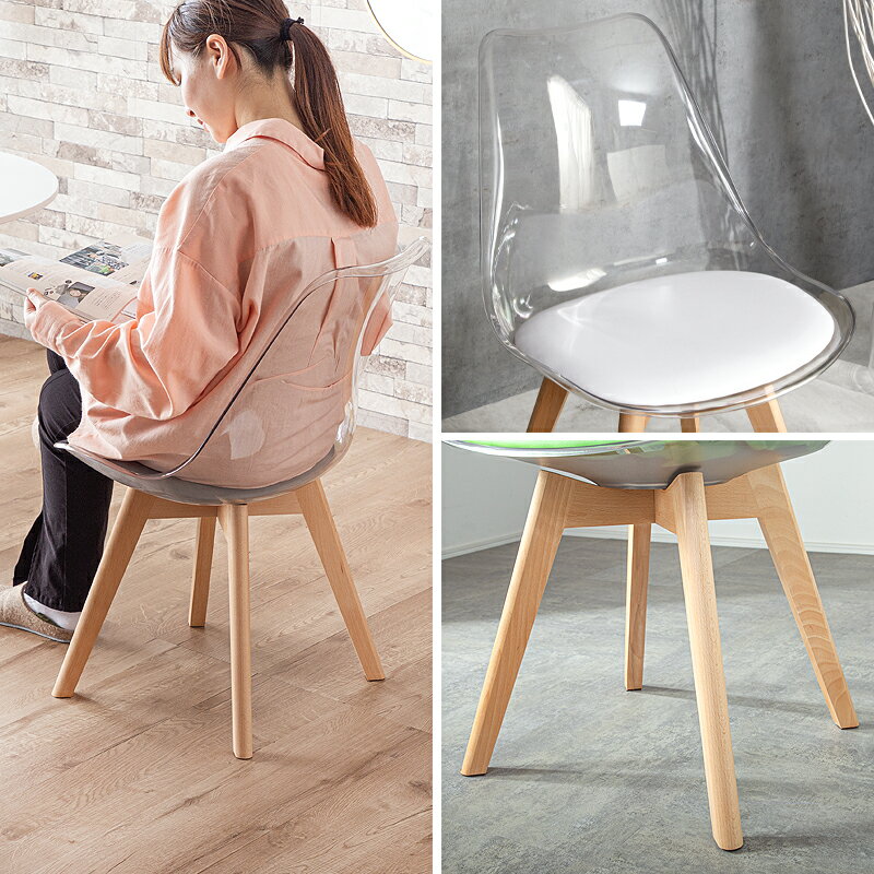 5%offクーポン 14日から◆クリアチェア ダイニングチェア 2脚セット 4脚セット クッション付き イームズチェア クリア 天然木脚 木製 椅子 いす チェア デスクチェア チェアー 食卓椅子 レザー調 PVCレザー 北欧 おしゃれ クリスタルスワン |