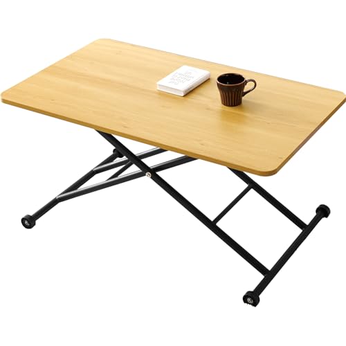 萩原 昇降式 テーブル ローテーブル 木目調 大きめ 【 完成品 組立不要 】 ガス圧式 無段階 高さ調節 キャスター付き 幅 101 送料無料 |