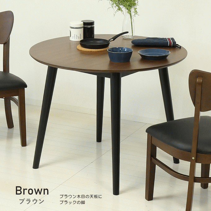 ダイニングテーブルセット 3点セット 幅90 丸テーブル 食卓テーブル 2人掛け おしゃれ シンプル 円形 ダイニング 2人用 90cm幅 丸 円形テーブル メラミン化粧板 ウレタン塗装 ラバーウッド材 ブラック ミディアムブラウン |