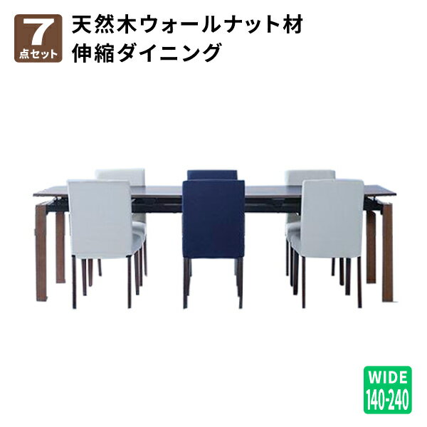 ダイニング7点セット(テーブル+チェア6脚) 幅140-240 ダイニングテーブル ダイニングチェア ダイニングテーブルセット 伸長式 天然木ウォールナット材 デザイン伸縮ダイニングセット (WALSTER ウォルスター) 送料無料 |