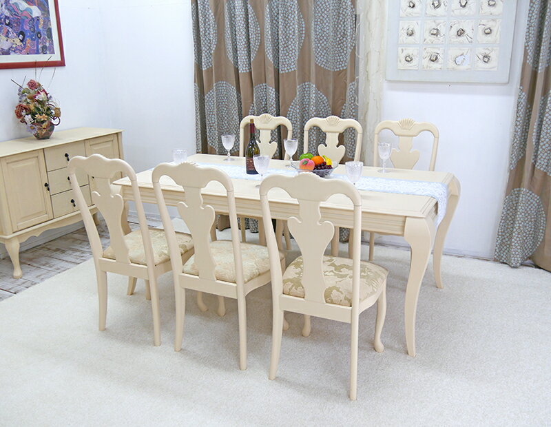 猫脚 大型ダイニングセット クラシック調 クイーンアン エレガントテーブル 180cm幅 テーブル チェアセット アイボリー色 テーブル7点セット テーブルとチェア6脚セットブリリアン |