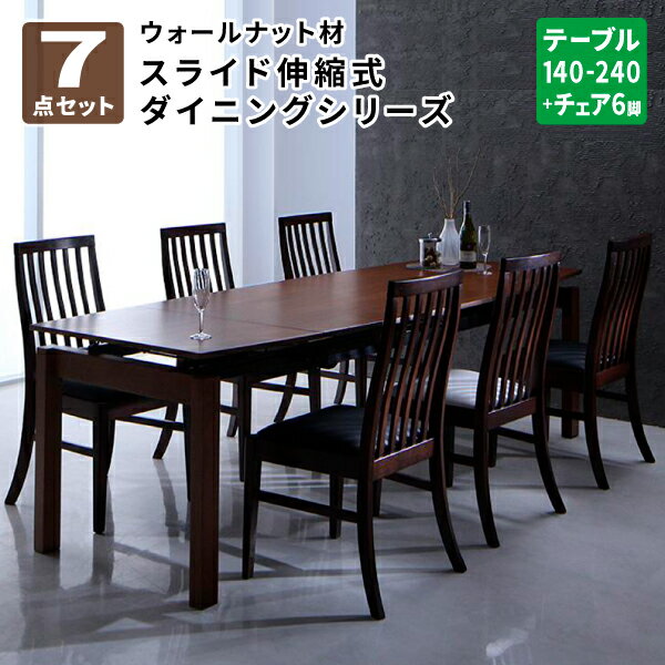 ダイニング 7点セット(テーブル+チェア6脚) 幅140-240 ダイニングテーブルセット ダイニングセット 伸長式 ハイバックチェア ウォールナット材 スライド伸縮式ダイニング (ジェミニ) 送料無料 |