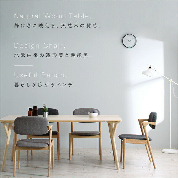 北欧ナチュラルモダンデザイン天然木ダイニングセット 6人 7点セット(テーブル+チェア6脚) W170 |