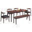 オーク材・ウォールナット材 北欧伸縮式ダイニング 6人 6点セット(テーブル+チェア4脚+ベンチ1脚) W140-240 |
