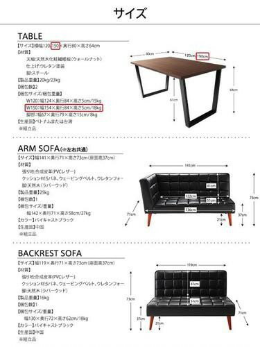 ダイニングテーブルセット 6人用 コーナーソファー L字 l型 ベンチ 椅子 おしゃれ 安い 食卓 レザー 合皮 カウチ 4点 ( 机+ソファ1+左肘ソファ1+長椅子1 ) 幅120 西海岸 ヴィンテージ インダストリアル レトロ 高さ65 ロータイプ 低め ウォールナット 大きい |