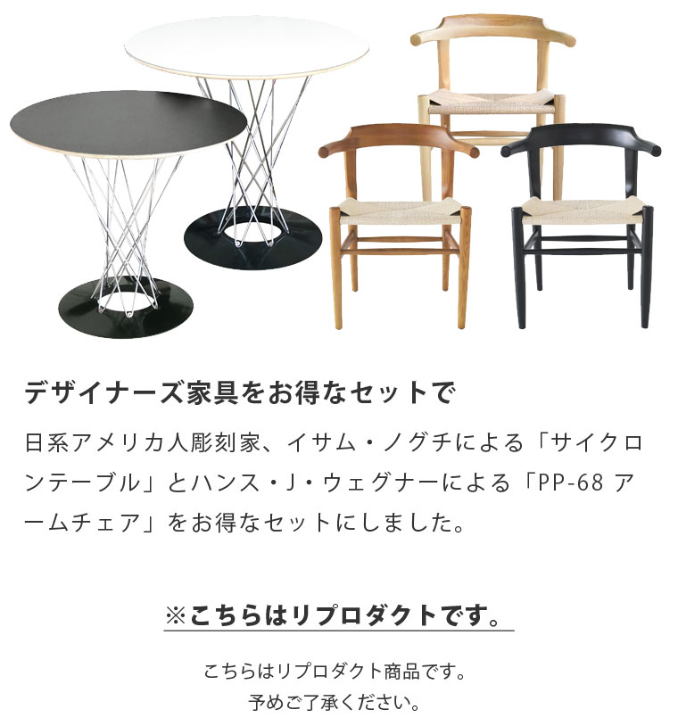 《お得な3点セット》サイクロンテーブル直径80cm イサム・ノグチ & アームチェア PP-68 ハンス・J・ウェグナー デザイナーズダイニングセット リプロダクト 送料無料 |