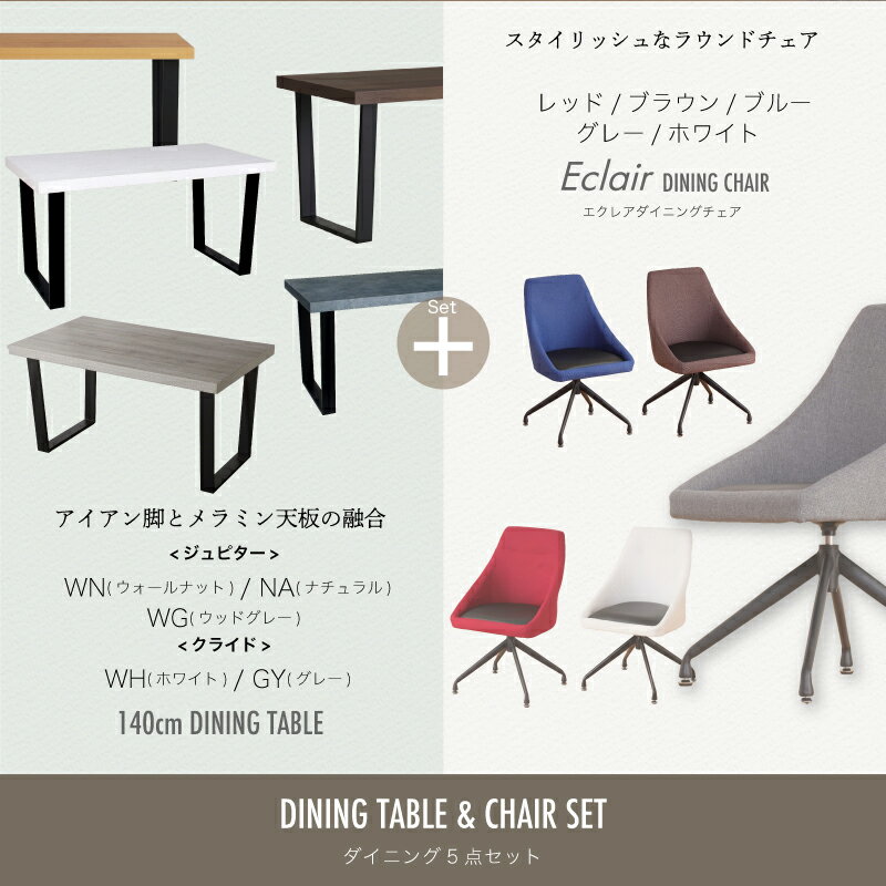 選べるレビュー特典あり■汚れとキズに強い ダイニングテーブルセット ダイニングセット 4人掛け テーブル チェア チェアー 回転チェア 回転椅子 5点セット 140cm 140 食卓 石目調 コンクリート調 大理石調 ブラウン グレー ホワイト 4人用 4人 クライド エクレア |