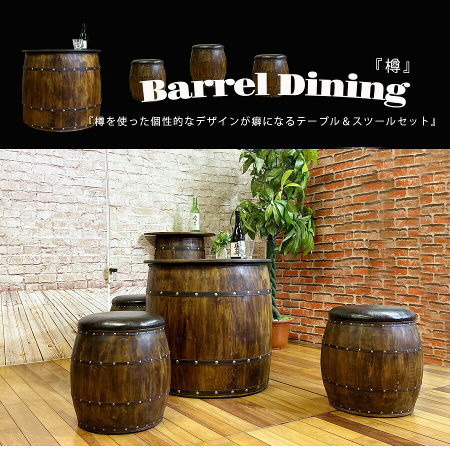 10%offクーポン配布中 カフェテーブルセット ダイニングセット 樽 バレル 4点セット テーブル スツール おしゃれ 南国風 カフェテイスト 3人掛け 杉材 ビアガーデン 映え |