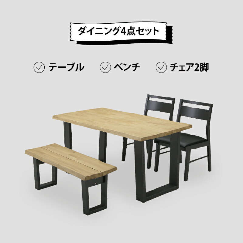 【1日はポイント10倍★】 \土日祝も発送/ [ ダイニング4点セット ] ダイニングテーブルセット 4人掛け ベンチ 北欧 4人用 4点セット おしゃれ セット ダイニングテーブル ダイニングチェア ベンチ 人気 木製 無垢 天然木 オーク 天然木 ナチュラル 4p works |