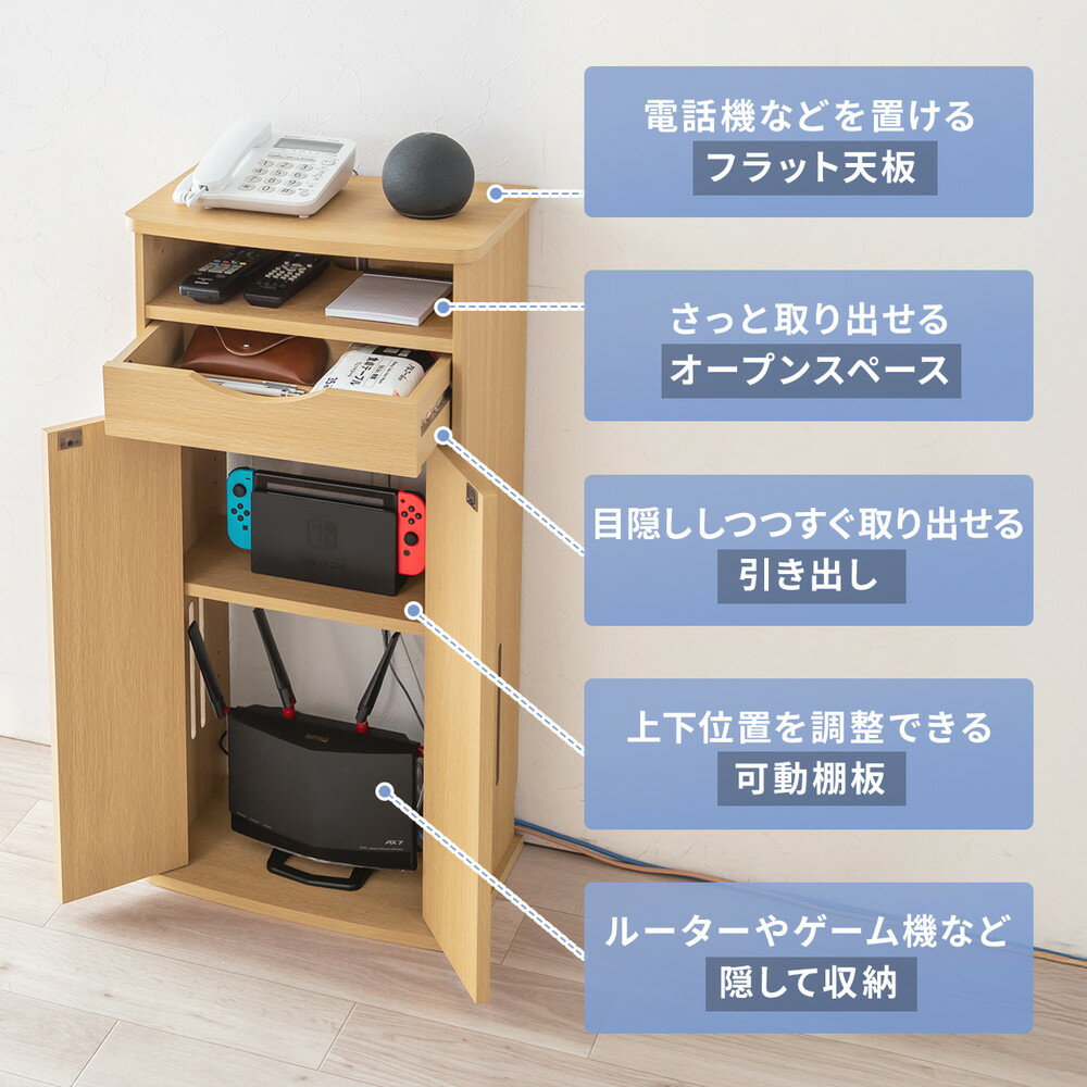 ルーター収納ボックス 電話台 幅40cm 扉付 引き出し付 木製 ケーブルボックス コード収納 ゲーム機収納 ラック FAX台 モデム収納 EZ2-CB063 |