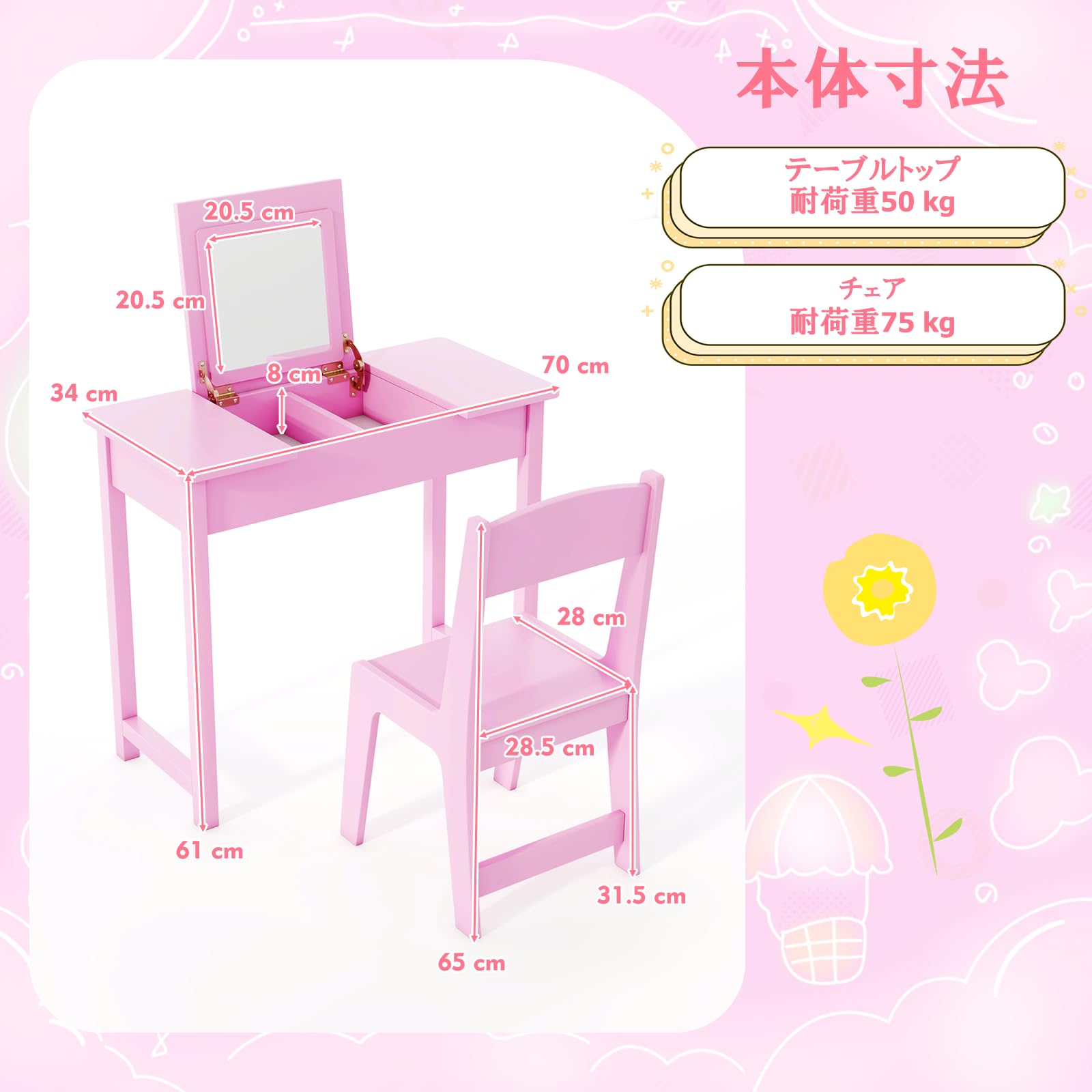 GYMAX ままごと ドレッサー 子供用 テーブルと椅子 2点セット 女の子 キッズデスク 学習机 収納付き おもちゃ お絵かき 読書 丸み加工 安全設計 転倒防止 お片付け習慣 姫系 可愛い おしゃれ 誕生日 プレゼント(ピンク) |