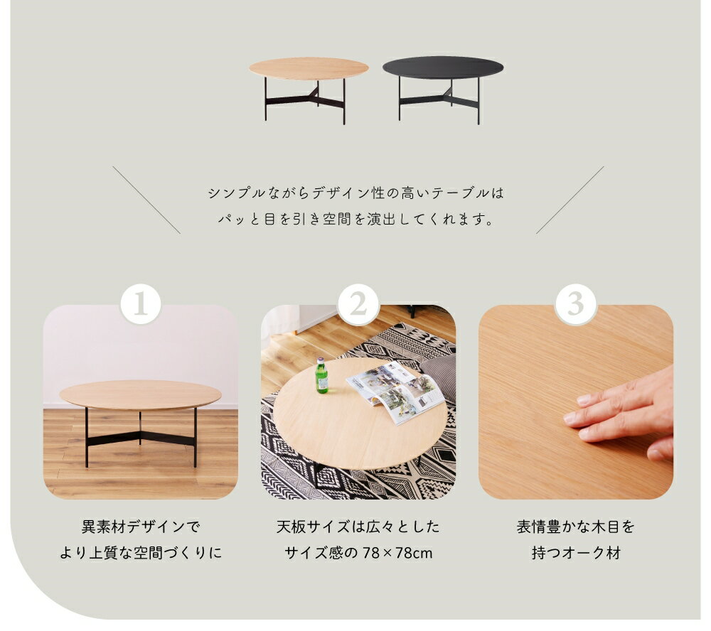 ローテーブル 幅78cm 円形 センターテーブル ラウンドテーブル 机 丸テーブル リビングテーブル おしゃれ 丸型 木製 天然木 北欧 アイアン 黒フレーム モダン ナチュラル ブラック 黒 コンパクト スリム リビング 一人暮らし 新生活 引っ越し |