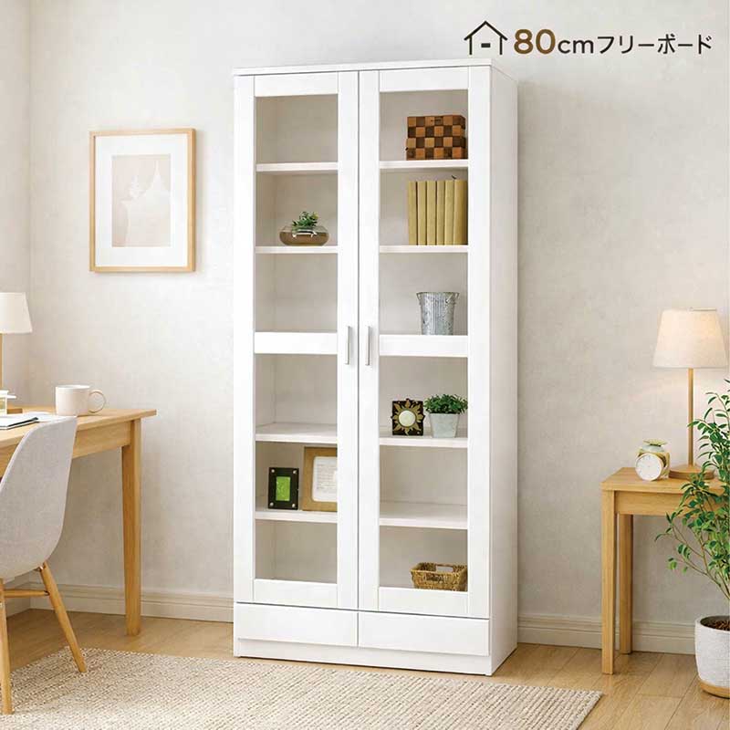 書棚 ガラス扉 扉付き 幅80cm 高さ180cm 白 光沢 本棚 大容量 食器棚 レンジ台 カップボード ハイタイプ キッチン 収納 引き出し 棚 リビング 収納 キャビネット ホワイト フリーボード 多目的ボード おしゃれ 北欧 シンプル 日本製 国産 新生活 一人暮らし |