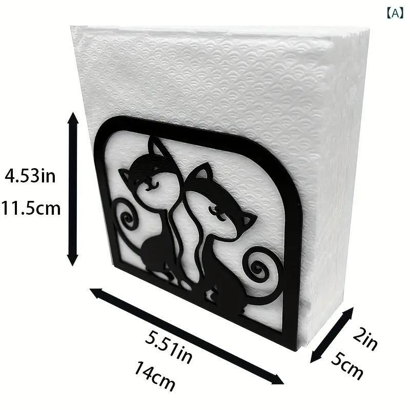 ティッシュケース ペア 猫 金属製 おしゃれ かわいい キャラクター 二匹の猫デザイン リビング 卓上 デスクトップ収納 ティッシュスタンド ボックス アイアン ブラック 高級感(x2) |