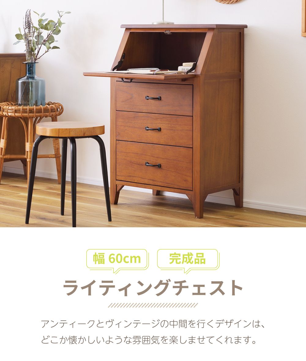 [クーポン配布中!] ライティングデスク アンティーク 幅60cm おしゃれ ライティングビューロー チェスト デスク 引き出し 収納 戸棚 小さめ 小さい コンパクト スリム 木製 天然木 完成品 ブラウン 可愛い レトロ お洒落 取っ手 黒 ブラック 完成品 |