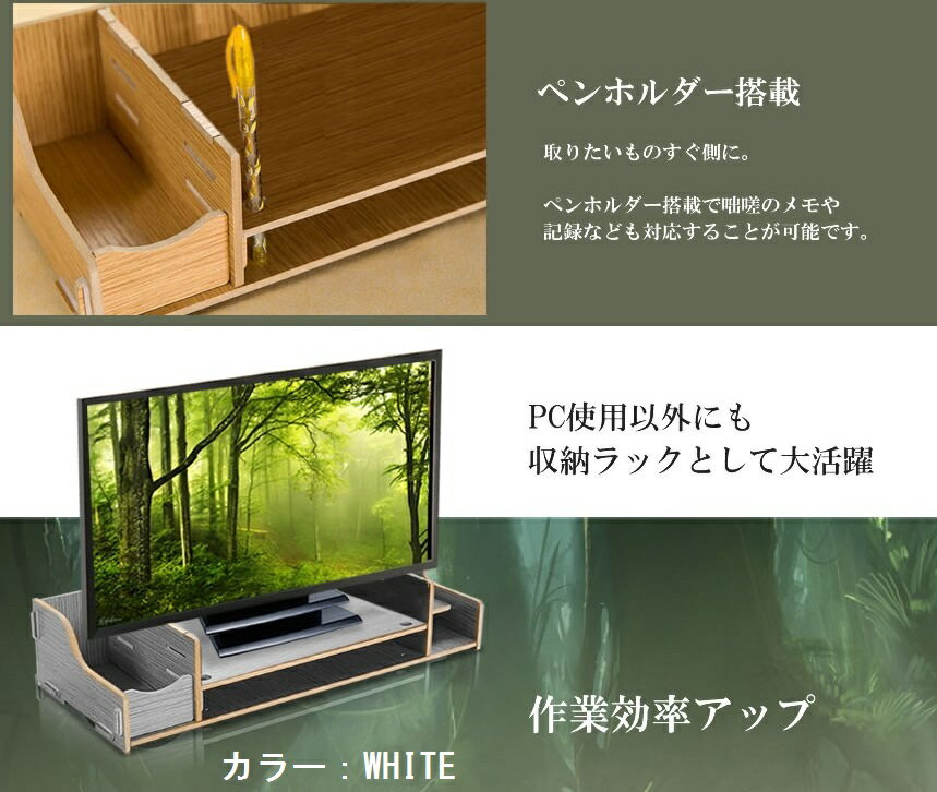 ワンアップデスク 木製 パソコンラック 収納 (ホワイト)[在庫処分][送料無料(一部地域を除く)] |
