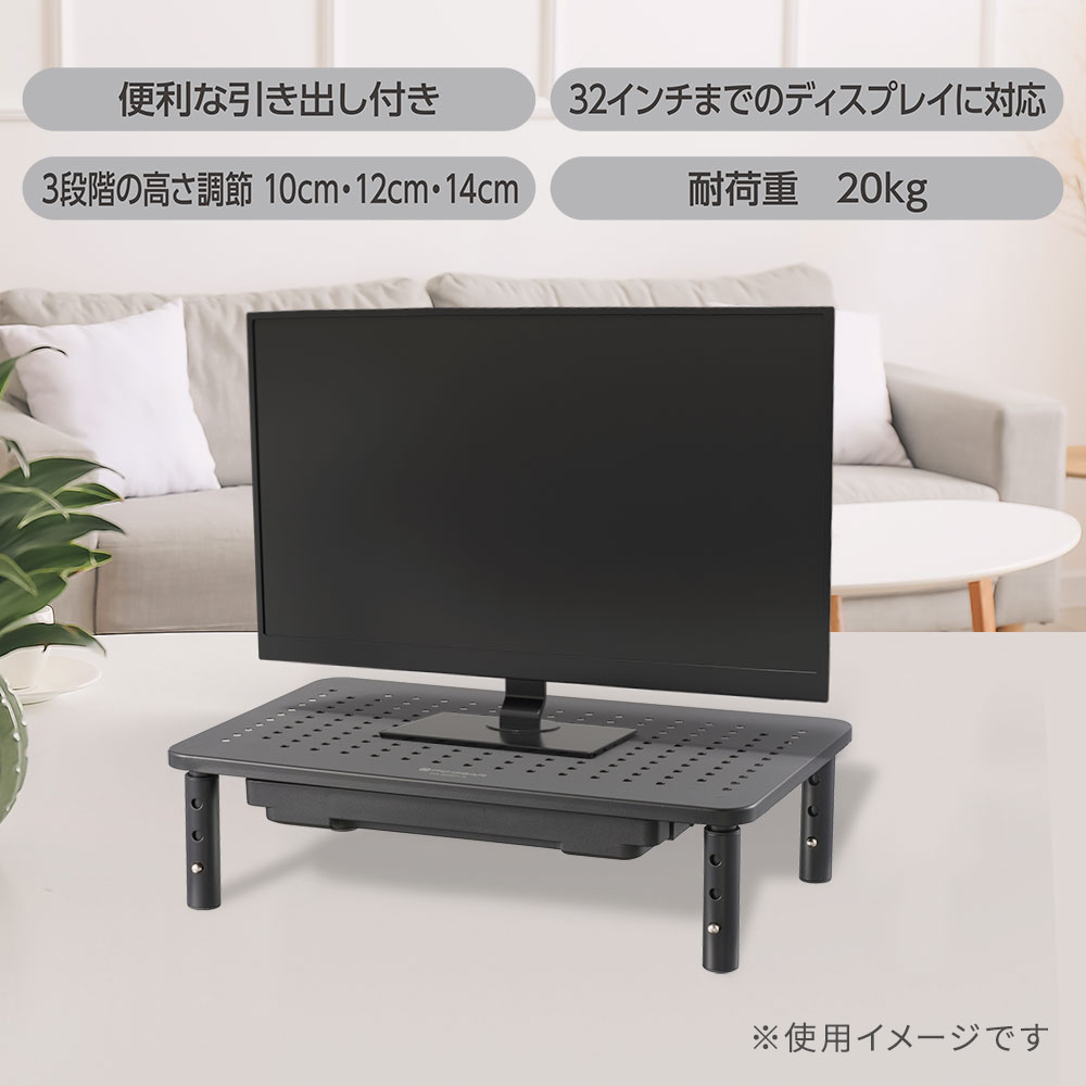 パソコン台 机上 引き出し PCGEAR 液晶ディスプレイスタンド ブラック|OA-SDS01-K 01-7227 オーム電機 |