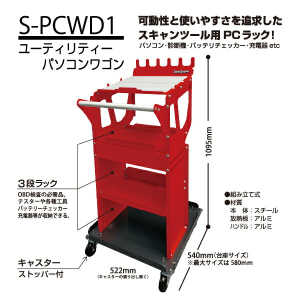 [メーカー直送業者便] シーズニュー S-PCWD1 ユーティリティーパソコンワゴン レッド ツールワゴン ノートパソコン台 SEEDNEW |