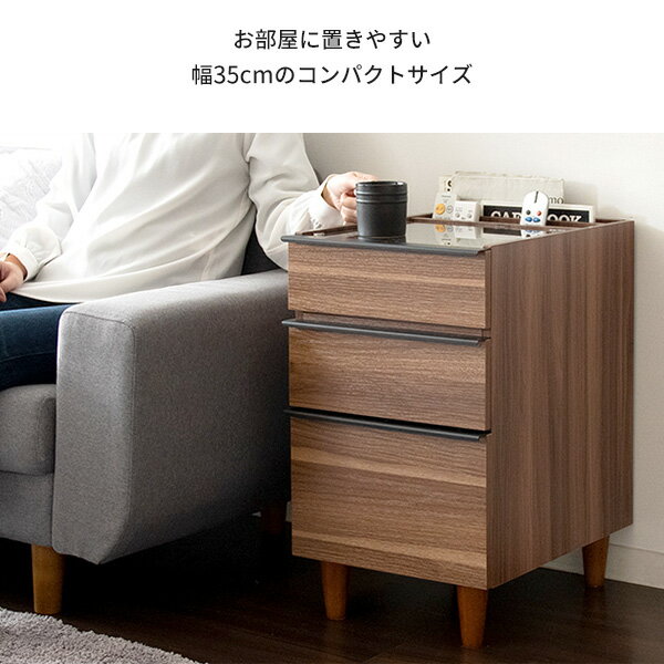 (アウトレット特価)ナイトテーブル ベッドサイドチェスト スモールチェスト 完成品 無垢材 引出収納 コンセント付 スマホスタンド付 ティッシュケース付 幅35cm バーチ材 |