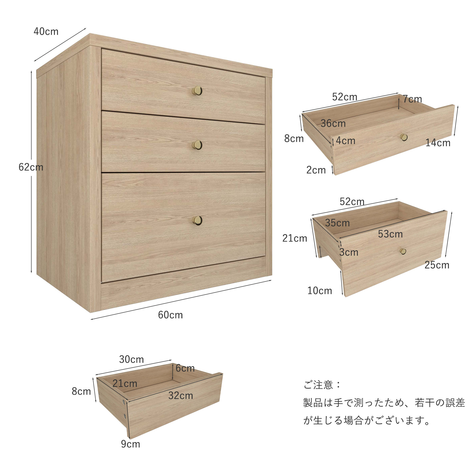 チェストタンス 木製 コンパクト 3段 幅60×奥行40×高さ62cm モダン おしゃれ 大容量収納 サイドチェスト 収納ケース サイドボード ナチュラル |