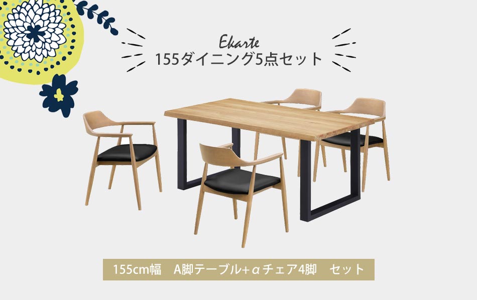 ☆全品10%OFFクーポン ダイニング5点セット 【送料無料】 エカルテ ダイニングテーブルセット 155cm幅テーブル αチェア4脚セット 4人掛け 4人用 椅子4脚セット ダイニングセット ダイニングテーブル 食卓セット 食卓5点セット 北欧風 モダン シンプル カフェ |