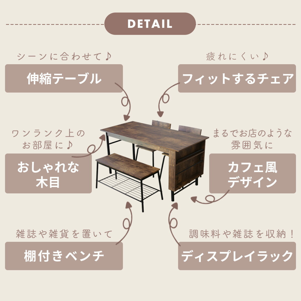【11%OFFクーポン配布中★12/1に使える】 【組立設置サービス付き】 ダイニングテーブルセット 伸長式ダイニングテーブル 4点セット 5点セット ダイニングセット ダイニングテーブル幅120-160 回転チェア2脚 ベンチ 北欧風 ウォルナット オーク 伸縮 |