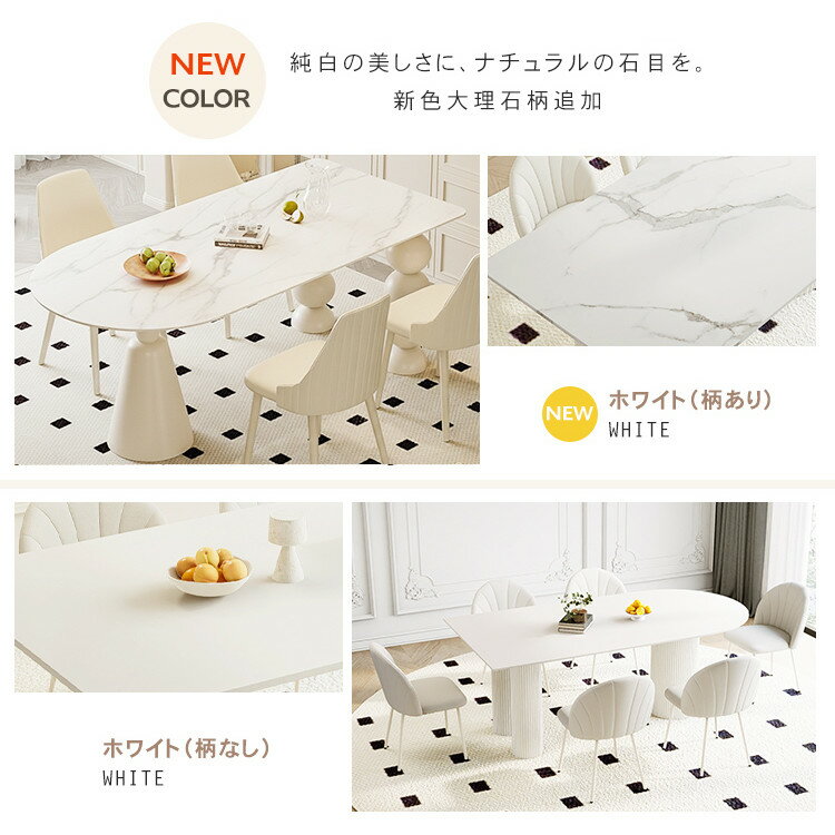 【5年保証】ダイニングテーブル 4人掛け 幅140cm 160cm 180cm ホワイト 白 セラミックテーブル 大理石調 半楕円 半円 リビングテーブル 6人掛け 120cm ダイニングセット おしゃれ 食事テーブル 韓国風 食卓 大理石柄 縞模様 ストライプ 高級感 民泊 ホテルライク MUTUKI |