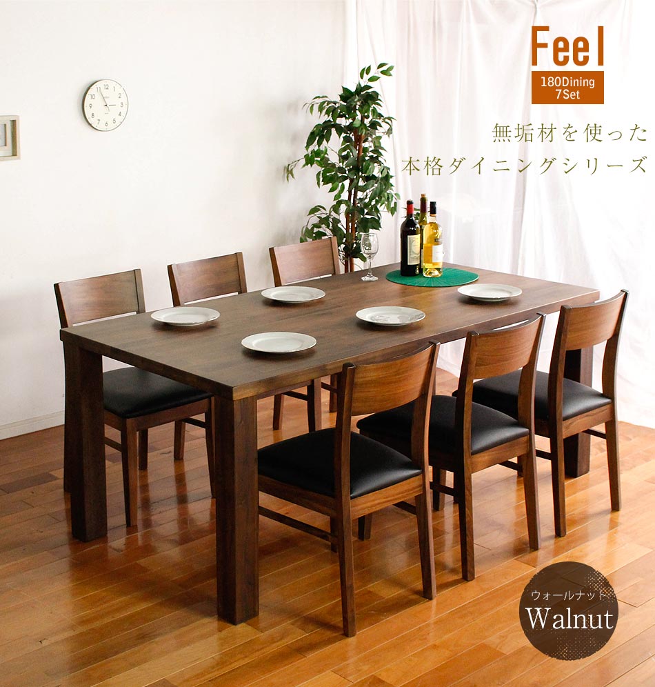 【10%OFFクーポン】180cm幅ダイニングテーブルとイス6脚がセットになった6人掛けダイニングセット。天然木を使った北欧風ダイニング。大家族向け |