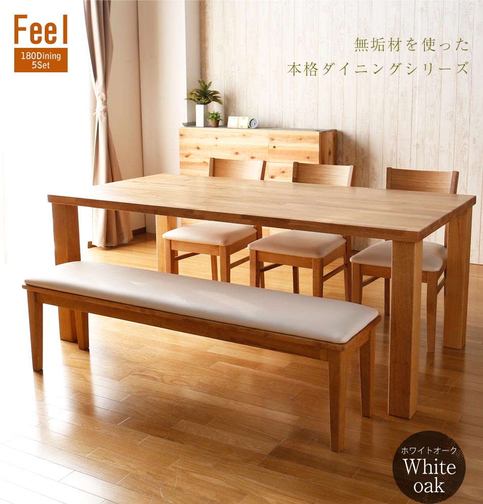 【送料無料】 Feel ダイニング180cm幅 5点セット ベンチ チェア3脚セット ダイニングセット 6人掛け ダイニングテーブル ダイニングテーブルセット 北欧風 北欧 木製 天然木 食卓 食卓セット チェ |