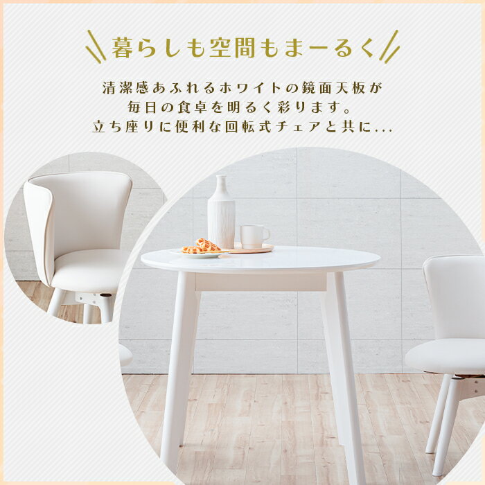 ダイニングセット 2人 ホワイト 円形 3点 回転椅子 丸テーブル 80cm 白 ダイニングチェア 鏡面 回転式 低め かわいい 丸い カフェ風 2人用 モダン コンパクト カフェテーブルセット ダイニングテーブルセット おしゃれ gkw |