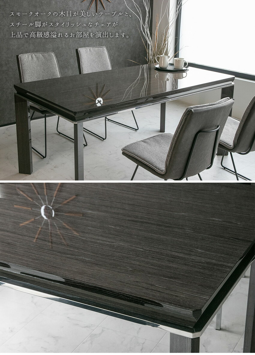 【送料無料】 ダイニングセット 5点セット 4人掛け 鏡面 テーブル オーク 木製 スモークオーク ファブリック ファブリックレザー スチール脚 椅子 グレー ブラック 黒 モダン スタイリッシュ 北欧 おしゃれ 高級 4人用 ダイニングテーブルセット |