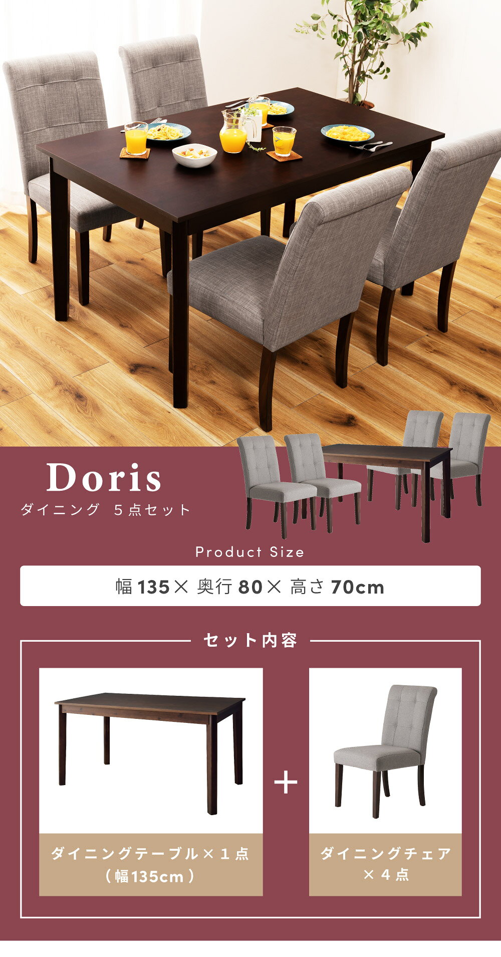 ダイニングテーブルセット ダイニングセット 4人掛け 4人用 5点 135×80 幅135cm 木製 天然木 アカシア チェア チェアー 椅子 食卓 机 コンパクト おしゃれ 高級感 アンティーク モダン シンプル ダークブラウン グレー |