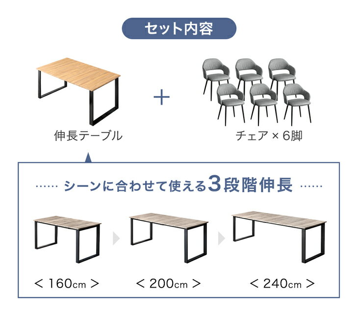 【正午~クーポン5%引】 3段階伸長 ダイニングセット 160 200 240 6人掛け 7点 ダイニングテーブルセット 伸長式ダイニングテーブル 伸縮 エクステンション ダイニングテーブル ダイニングチェア チェア 椅子 【超大型】【後払/時間指定NG】 |