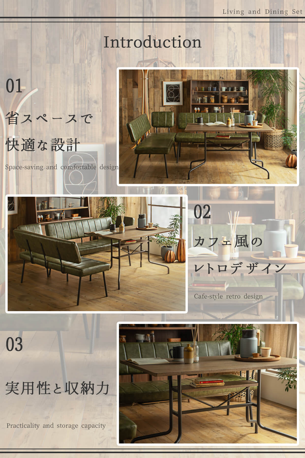 【開梱設置付】リビングダイニングセット ヴィンテージ レトロ ソファダイニング ベンチソファ 木製テーブル アイアン脚 食卓セット 北欧風 ミッドセンチュリー カフェ風 インテリア コーディネート |