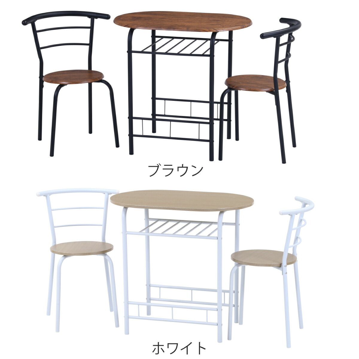 ダイニングテーブルセット 2人掛け テーブル幅81cm チェア×2 ( ダイニングセット カフェテーブル 椅子 テーブル セット コンパクト オーバル 丸 楕円 木目調 スチール 異素材 天板下 収納 棚 )【39ショップ】 |