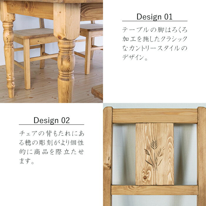 ★カントリー好きなダイニング5点セット★ ダイニングセット 5点セット 4人 引出し 天然木 無垢 木製 パイン材 天然オイル塗装 送料無料 |
