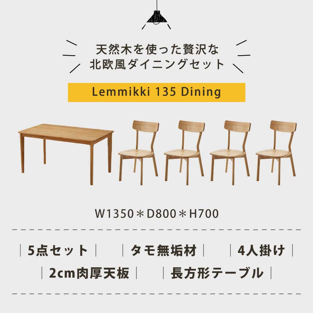 【10%OFFクーポン】ダイニングセット 4人 おしゃれ 木 ダイニング5点セット 【送料無料】 幅135テーブル ダイニングチェア4脚 ダイニング 5点セット 天然木 無垢材 北欧 |